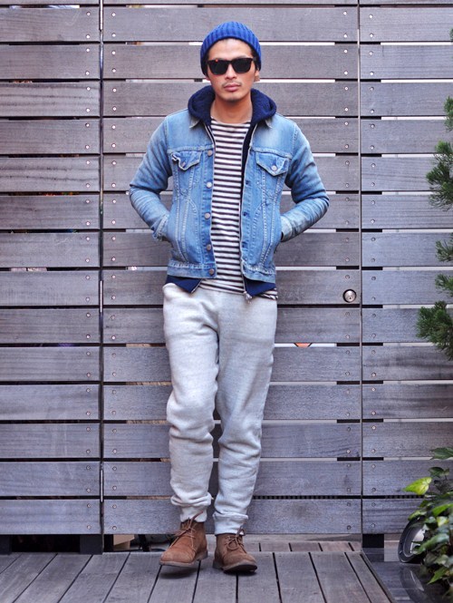 今回はスエットパンツに合わせていますが