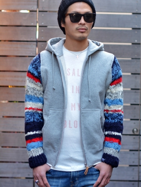 ミックスのニットで袖を作ったタイプ