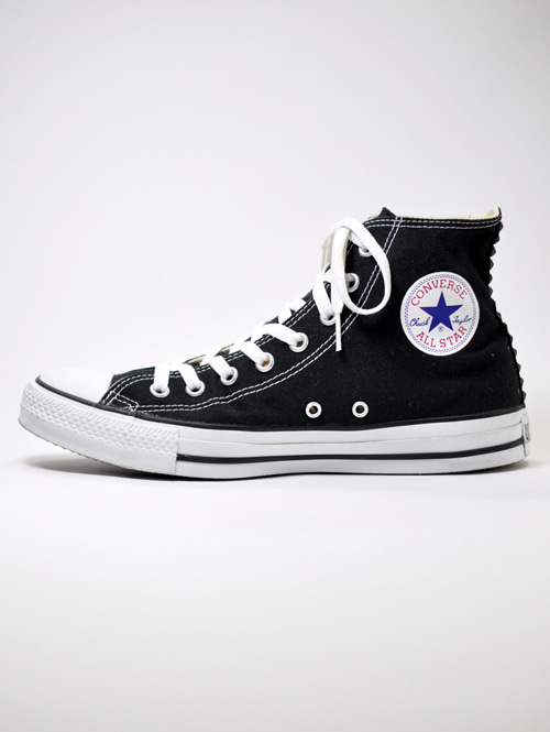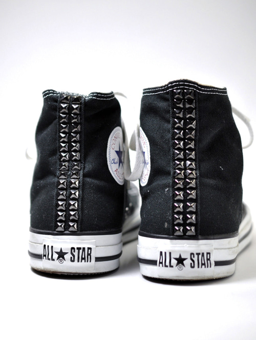 ブラックのスクエアースタッズを手打ちで打ちつけています。