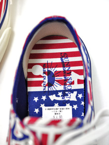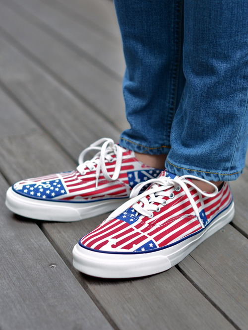 オリジナルで起こしたアメリカンフラッグ柄の生地を使い