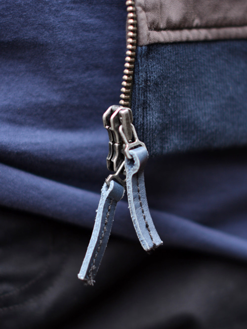 ジッパーもダブルジッパーで、ネイビーのレザーが付いていてこれもお洒落ですよー