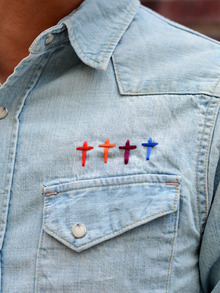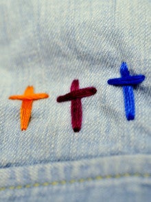今回はクロスのハンドステッチがレインボーではいています。