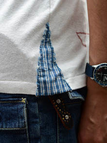両サイドの裾にはBURNOUTらしくこんなチェックの生地をたたきました。