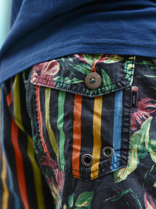 バックポケットにはココナッツボタンを使うなど