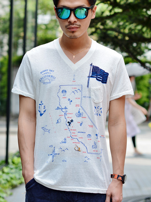 ハンドの刺繍が入ったVネックが入荷サーフィン