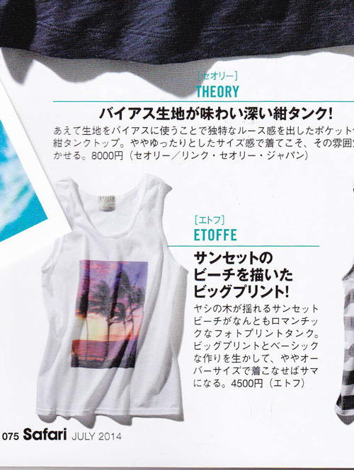 ETOFFE オリジナル フォトプリントタンクトップ SAFARI掲載
