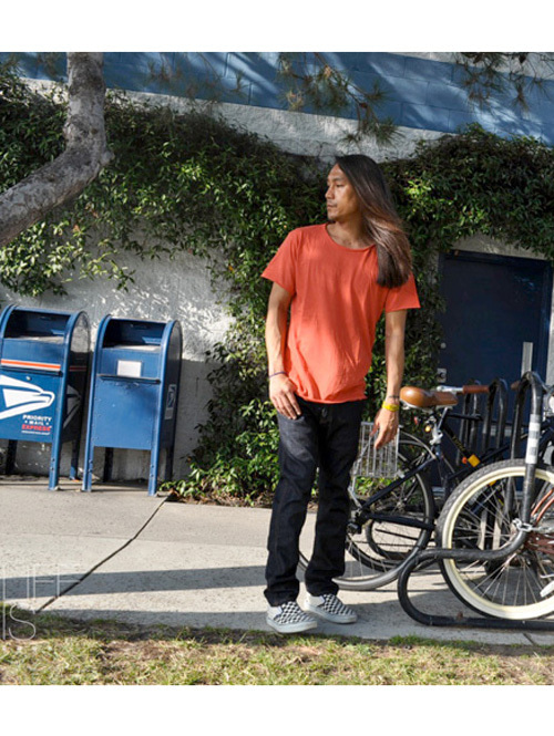 カリフォルニアでは良く見かけるネックや袖口そして裾が