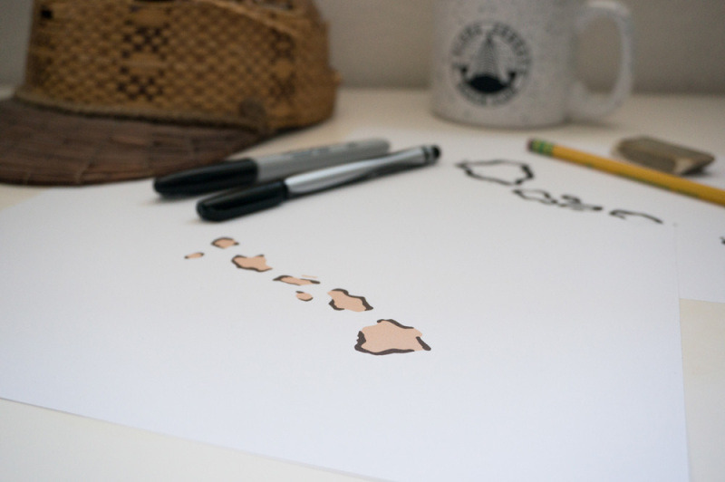 ハワイ諸島をモチーフにしたハンドのイラストを