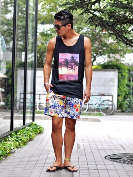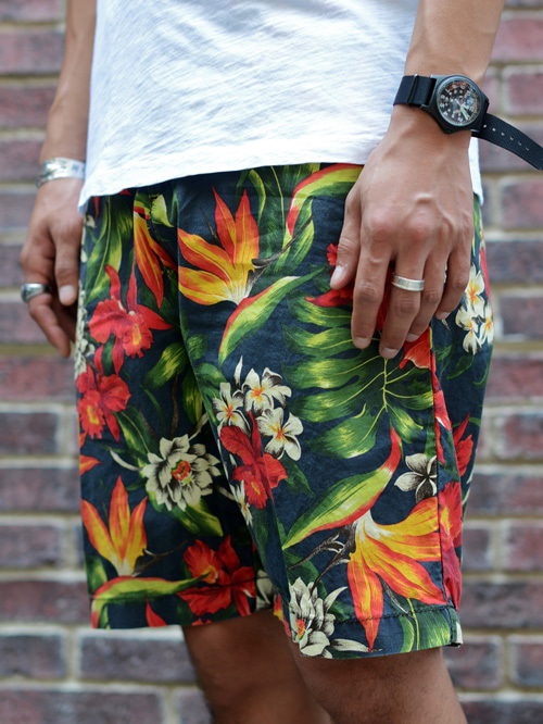 リゾートには必須のショーツですが、配色がいいものをお奨めしますヤシの木