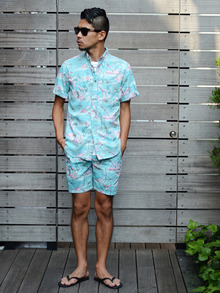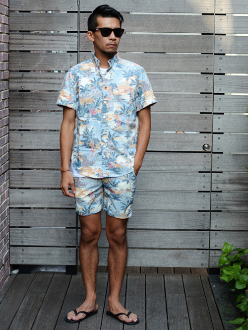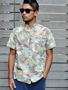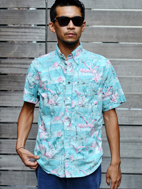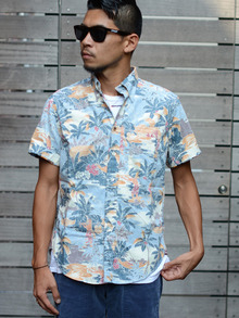本場ハワイの生地を使ってクラシックなアロハシャツに仕立てています。