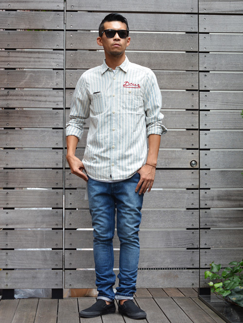 RRL等が良く使う、ストライプのデニム素材を使ったシャツで