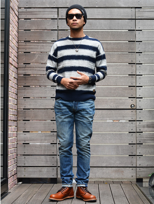 ボーダーのニットプラグ