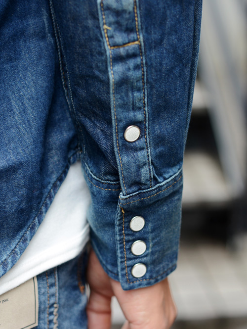 ホワイトのスナップボタンとポケットに入ったWのステッチも良い雰囲気です。