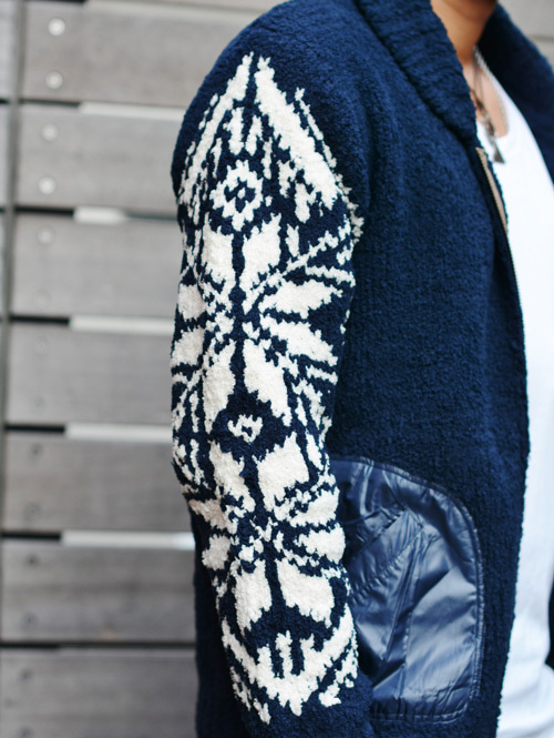 袖の部分には雪柄をいれ、カウチンらしいデザイン