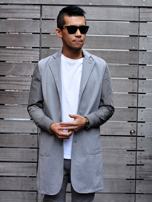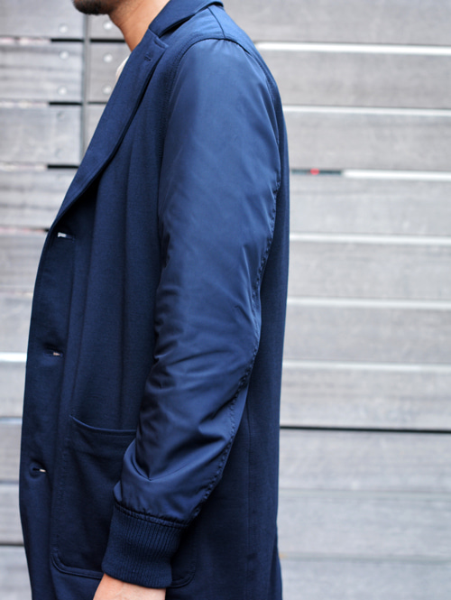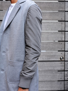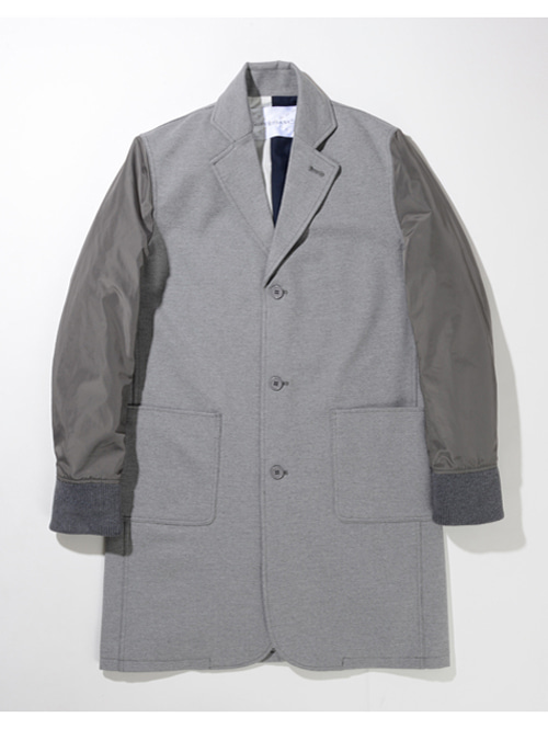 チェスターのデザインで、ボディーがジャージ素材で、袖がMA-1のようなナイロンで出来ており
