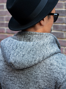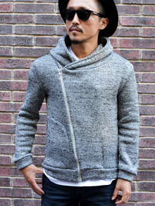 フード付きのライダースが入荷