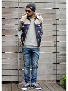 フードは取り外しできるので色んなスタイリングが楽しめます。