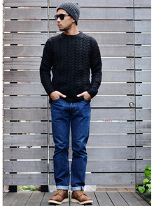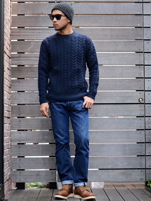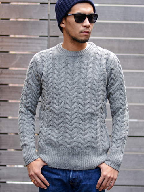 トラッドな縄編みのニットで、スタイルを選ばず使いやすい