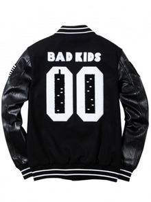BAD KIDSと名づけられたワッペンがいっぱい付いたスタジャンです。