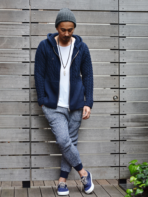 スエットのパーカーの様にいろんなスタイリングにも使えます。