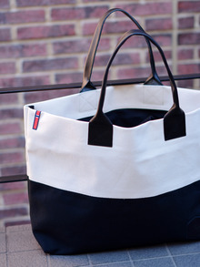 厚手のシッカリとした帆布を使い2トーンのパネルのデザインで