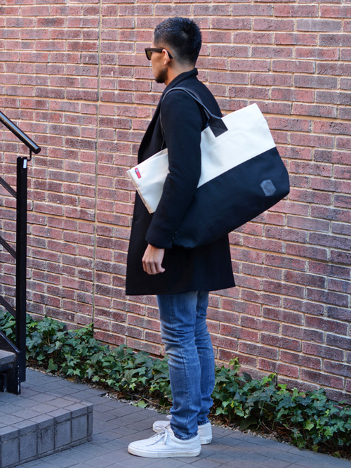 厚手のシッカリとした帆布を使い2トーンのパネルのデザインで
