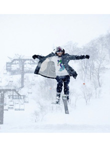 裾には冬山のグラフィックがプリントされており
