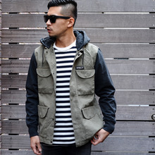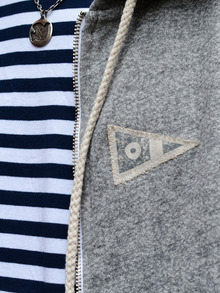 袖とフードがスエット地に切り返されたデザインで