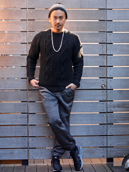 上品なスエットパンツを使ったスタイリングが楽しめます。