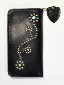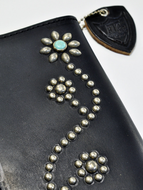 天然ターコイズを使って、人気のフラワースタッズが良い雰囲気です。
