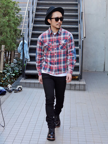 SMART SPICEのヴィンテージ加工されたチェックのネルシャツ