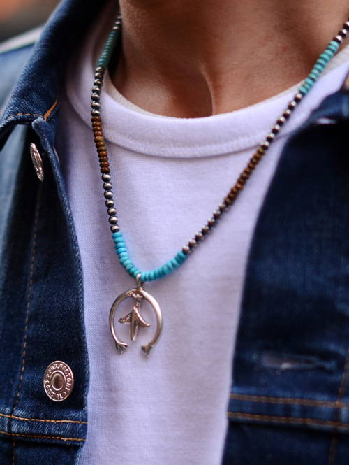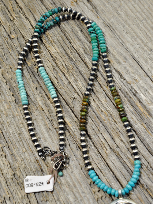 ネックレスは、5種類のターコイズを使っており