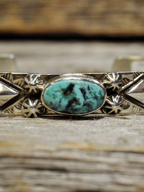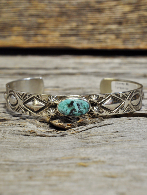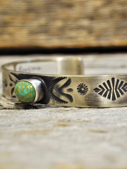 ロイストン鉱山のグリーン懸かった綺麗なターコイズを使っています。