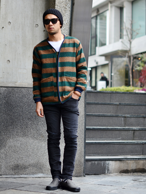 カーディガンのデザインをしたリバーシブルのジャケットで