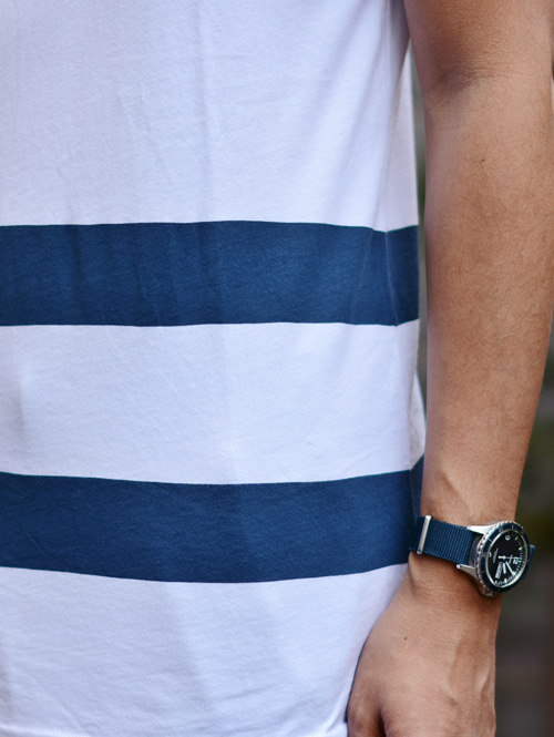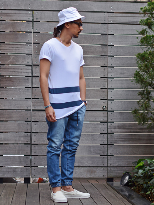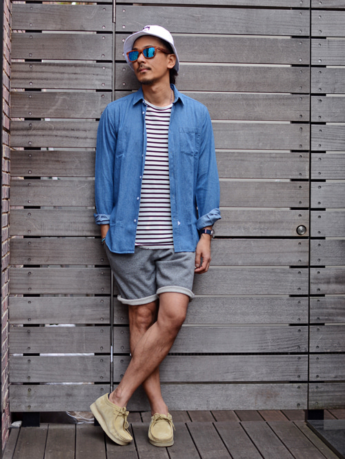 夏場はこんな感じで、爽やかにスタイリングで着ます。