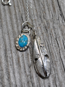 Sunset&Eagle スモールフェザー&ターコイズネックレス