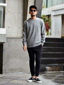 オリジナルのスエット生地を使ったクルーネック