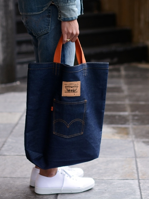 オレンジタブのトートバッグ