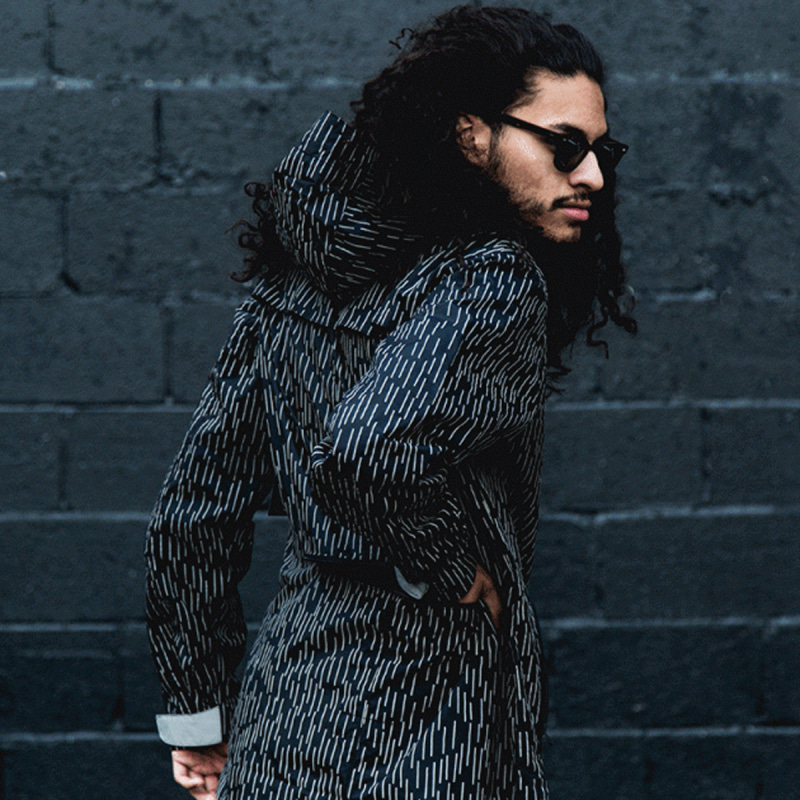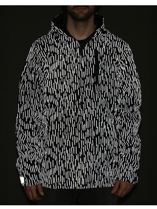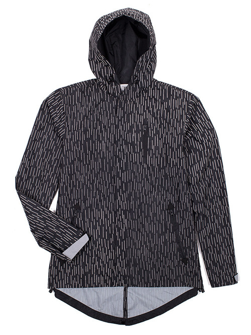 雨をイメージした柄をリフレクターでプリントしておりお洒落