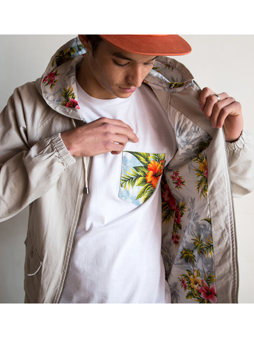 裏地がクラシックなトロピカル柄でデザインされています。