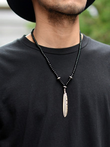 ブラックビーズに、ハンドメイドのフェザーが付いた逸品