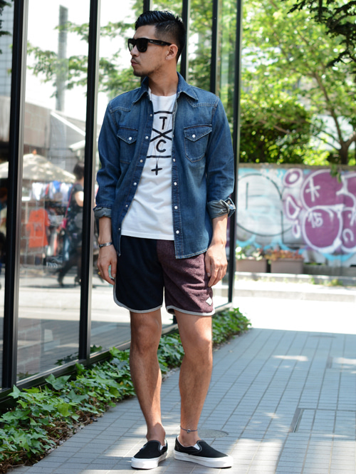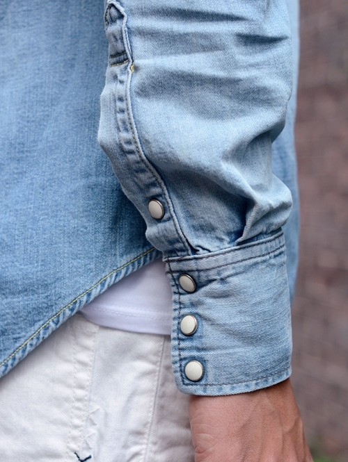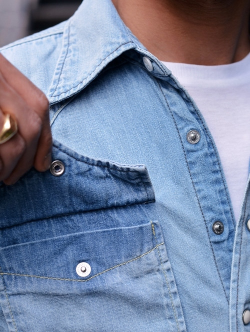 日焼した肌には、こんなデニムシャツが清潔感あっていい