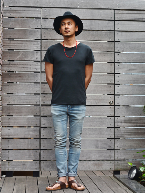 首や袖口が切りっぱなしになったGRABらしいTシャツ