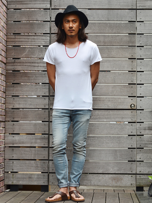 首や袖口が切りっぱなしになったGRABらしいTシャツ
