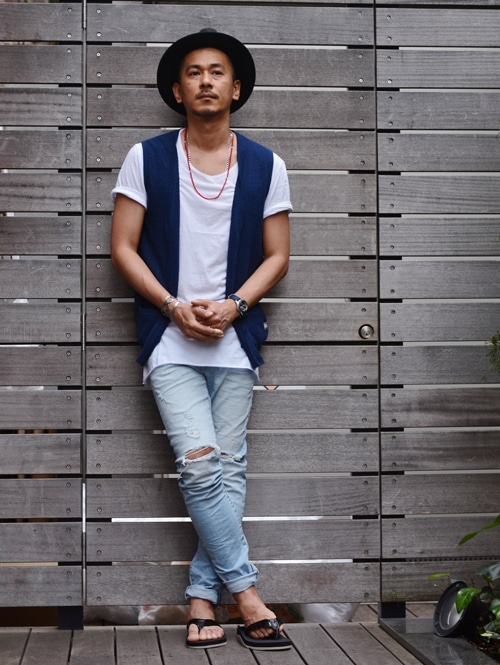 やはり夏のスタイリングには、NAVYのスリッポンがお奨めです。