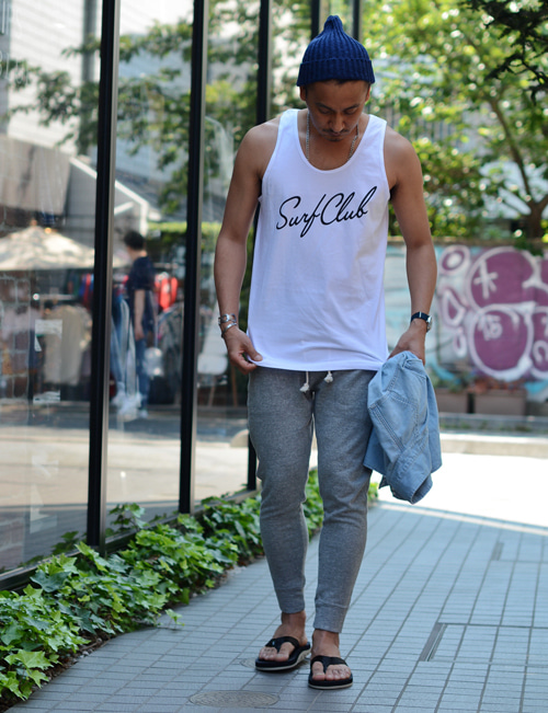今回夏用に、生地を薄くし、8分丈のクロップパンツのデザインで登場surf