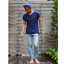 普通のデニムパンツで合わせてもお洒落