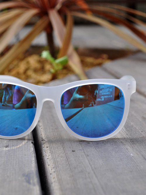 ブルーのミラーレンズが、夏のスタイルをより高めてくれそう