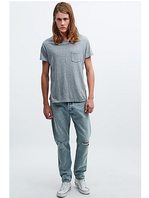 リラックス感のあるウエスト、501のトレードマークのボタンフライ、膝から裾へのテーパードラインが特徴で裾は約16-17cm