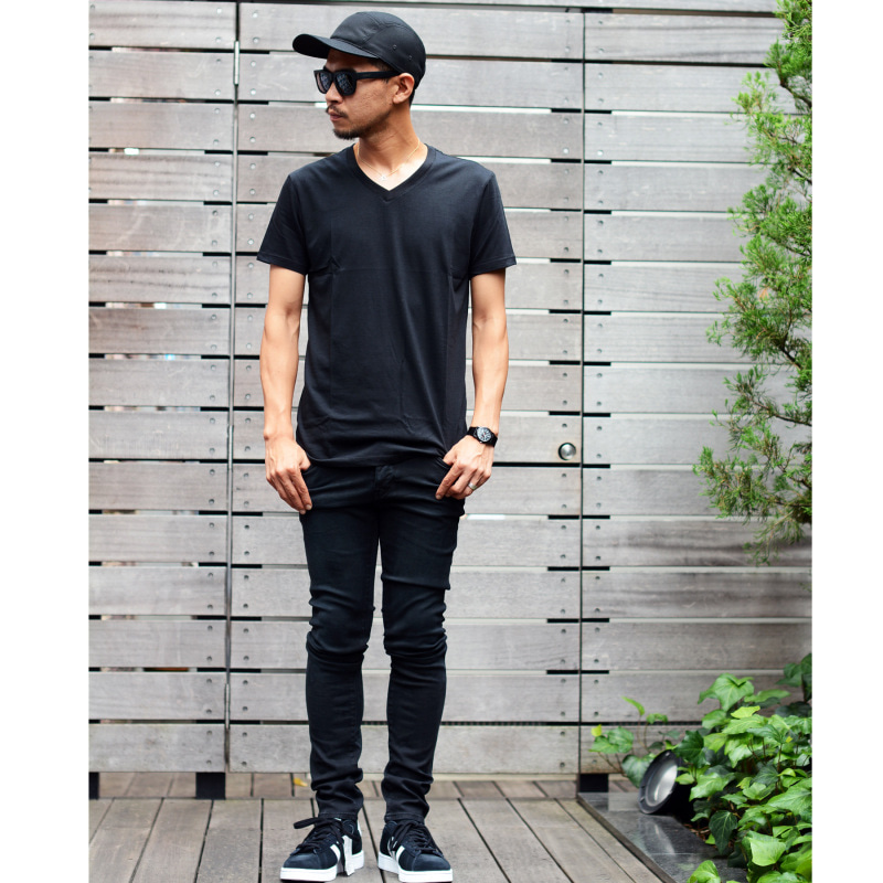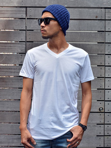 今注目の丈が長めのシルエットで、ネックはあまり深くないので使いやすい